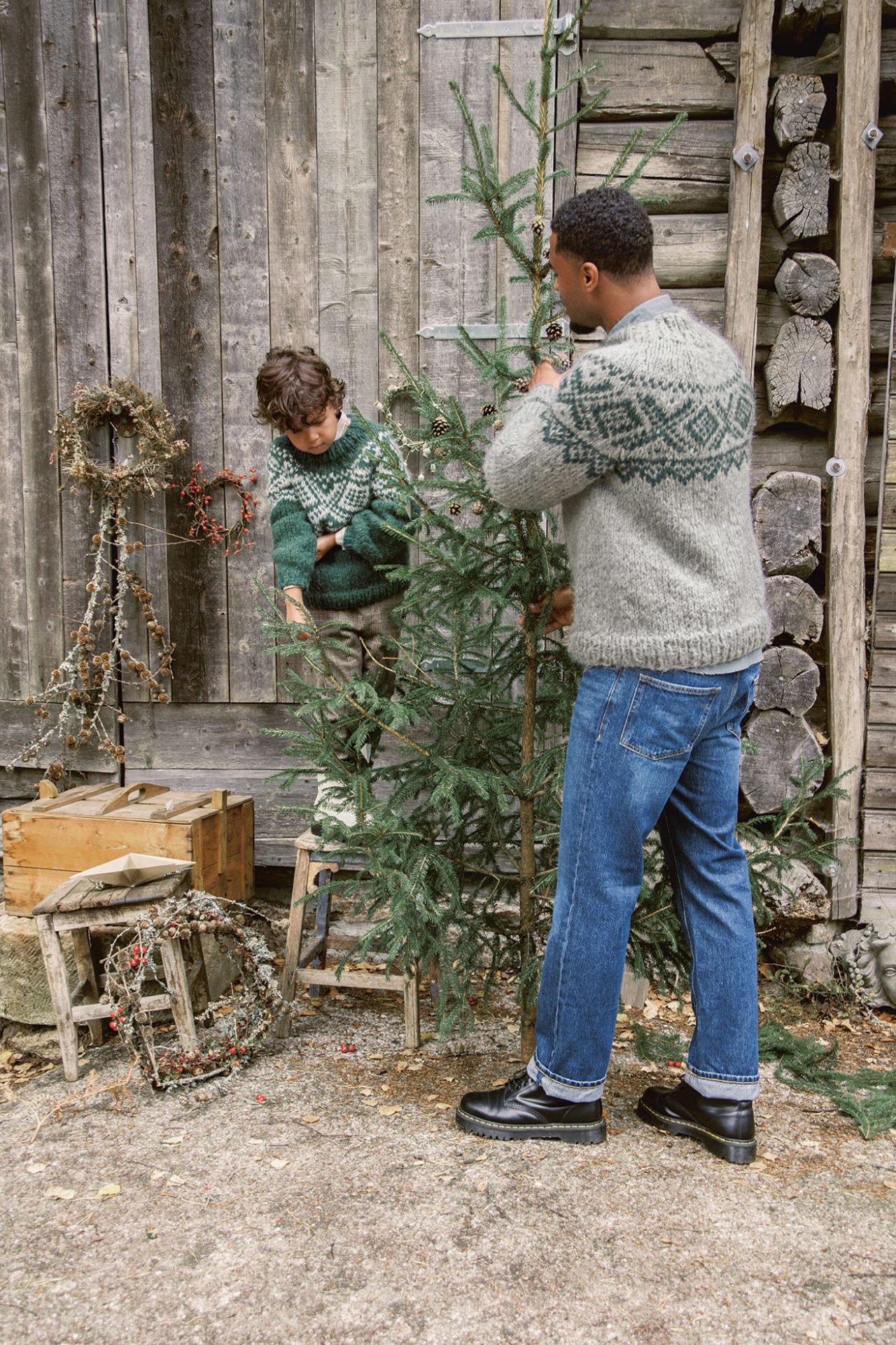 Peysan er prjónuð frá hálsmáli og niður með einum þræði af hvorri tegund af garni. Hálslíningin er prjónuð með brugðningu og hálsmálið mótað frekar með ÞSU styttum umferðum. Síðan er hringútaukning á berustykkinu og prjónað munstur samkvæmt munsturteikningu. Frá handvegi er hvert stykki prjónað fyrir sig.